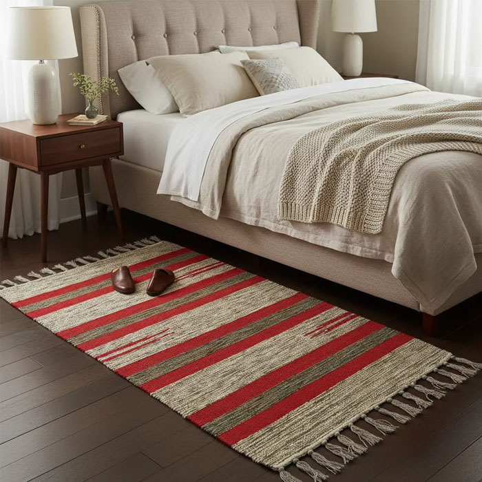 Esta alfombra o bajada de cama es más que un simple accesorio; es una pieza que transforma tu espacio personal en un refugio de confort. Ideal para aquellos que buscan un equilibrio entre funcionalidad y estética, esta alfombra se convierte en un elemento esencial en la decoración de tu hogar.