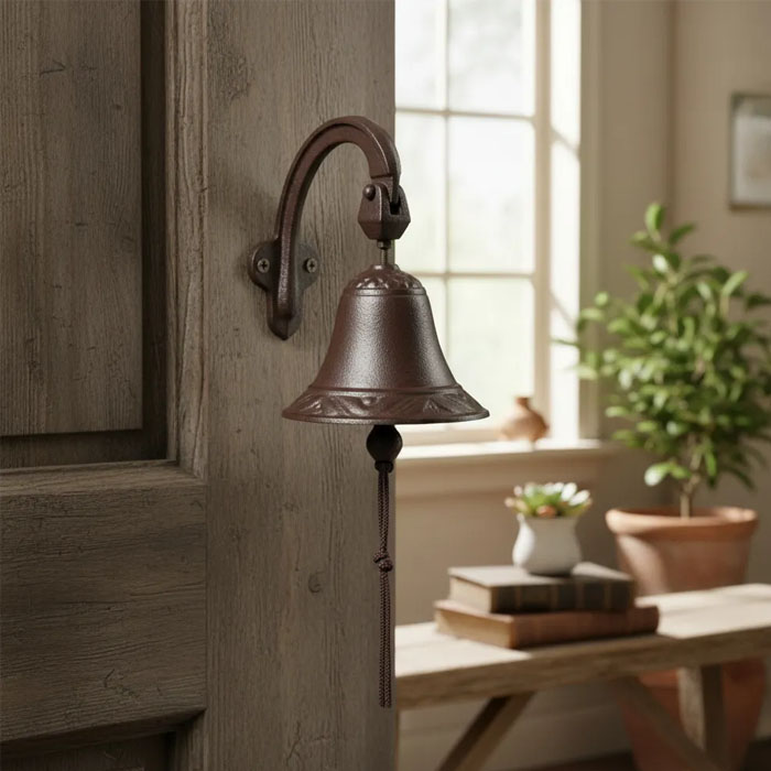 Transforma tus espacios con esta Campana de Hierro diseñ bisagra. Este elegante accesorio combina funcionalidad y estilo, ideal para quienes buscan un toque distintivo en su hogar. Su diseño robusto y atractivo se adapta a diversas decoraciones, desde lo rústico hasta lo contemporáneo. Fabricado en hierro de alta calidad, este adorno no solo es visualmente impactante, sino también duradero. Su acabado cuidado resalta la belleza del material, convirtiéndolo en un elemento decorativo que perdura en el tiempo. Perfecto para entradas, salas o cualquier pared que necesite un acento especial. La campana no solo es un elemento decorativo, sino que también puede ser utilizada para dar la bienvenida a tus invitados. Su sonido suave y melodioso añade un toque acogedor a cualquier ambiente. Ideal para quienes valoran la estética y la funcionalidad en su hogar. Incorpora este adorno en tu decoración y observa cómo transforma la atmósfera de tu espacio. Es una opción perfecta para quienes desean expresar su estilo personal y crear un ambiente cálido y acogedor. Medidas. Campana 10 cm. Figura 10 cm.