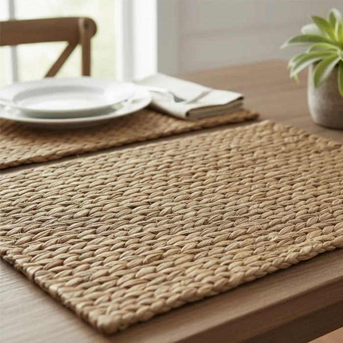 Transforma tu mesa con este Individual Centro de Mesa de Yute. Con unas dimensiones de 59×37 cm, este individual rectangular es ideal para cualquier ocasión, desde cenas familiares hasta reuniones informales. Su diseño se adapta a diversos estilos de decoración, aportando un toque natural y acogedor a tu hogar.