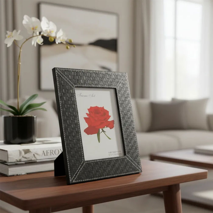 Este marco de foto Ecocuero es la opción ideal para resaltar tus recuerdos más preciados. Con un diseño sofisticado y moderno, este portarretrato se adapta a cualquier estilo de decoración, aportando un toque de elegancia a tu hogar u oficina. Fabricado en ecocuero de alta calidad, este marco no solo es visualmente atractivo, sino también duradero y fácil de mantener.