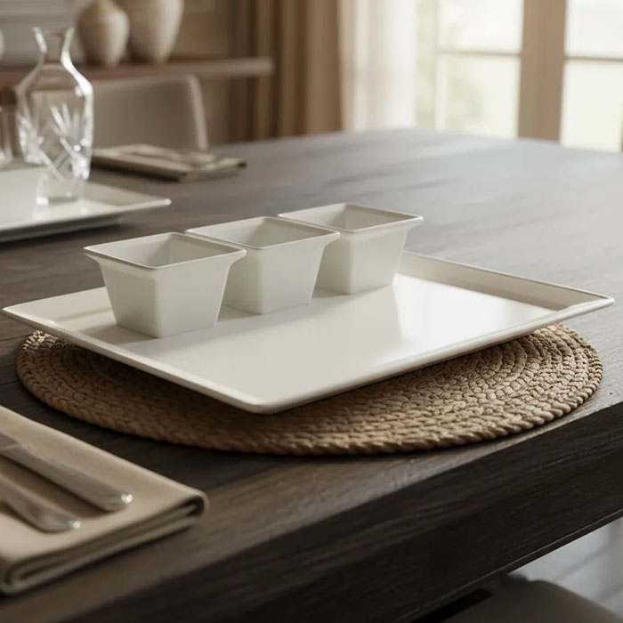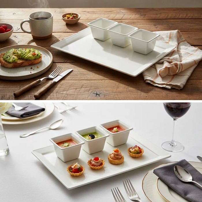 Descubre la elegancia y versatilidad de este Juego de Plato y Pocillos. Este conjunto, diseñado en un clásico color blanco, es ideal para realzar cualquier mesa, ya sea en eventos especiales o en la comodidad de tu hogar. Su diseño liso y forma rectangular aportan un toque de sofisticación que se adapta a diversas ocasiones. Fabricado en porcelana de alta calidad, este juego combina durabilidad y estética, asegurando que cada comida se convierta en una experiencia memorable.