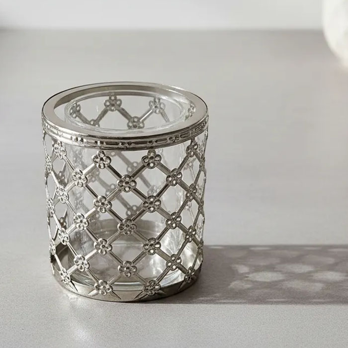 Con un diámetro de 12 cm y una altura de 10 cm, este farol es ideal para mesas, estanterías o rincones especiales de tu hogar. Su diseño minimalista y contemporáneo lo convierte en un complemento perfecto para decoraciones modernas o clásicas.