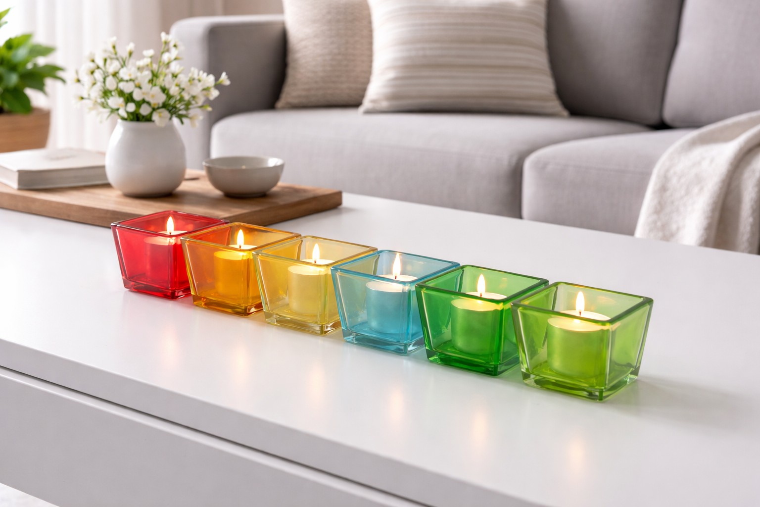 Transforma tu espacio con este Set de 6 Portavelas de Vidrio Coloridos. Cada portavelas, con un diseño cuadrado y dimensiones de 6 cm, aporta un toque de elegancia clásica a cualquier ambiente. Su material de vidrio permite que la luz de las velas se refleje de manera encantadora, creando una atmósfera cálida y acogedora.