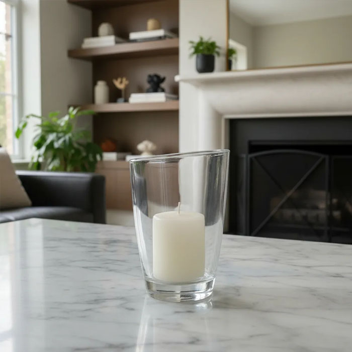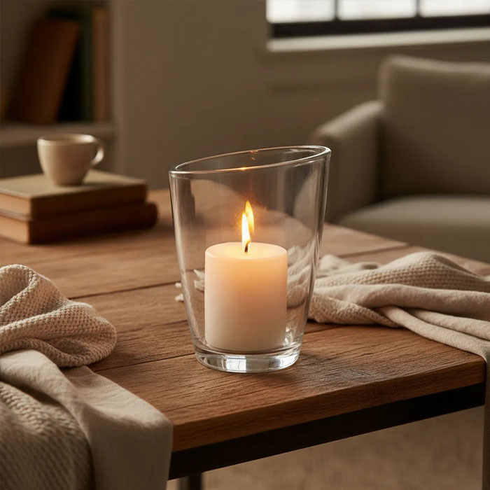 Fabricado en vidrio de alta calidad, su acabado brillante resalta la luz de las velas, creando un ambiente cálido y acogedor. Su estilo moderno se adapta perfectamente a diversas decoraciones, desde minimalistas hasta más elaboradas, aportando un toque de sofisticación.